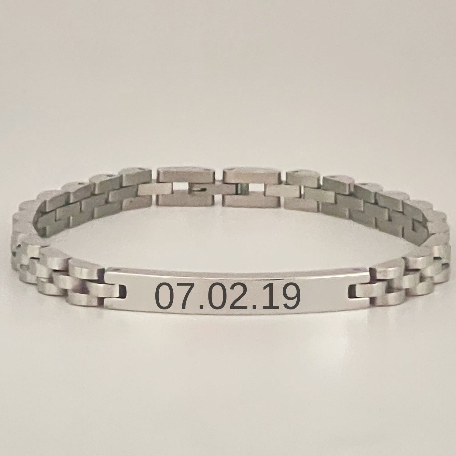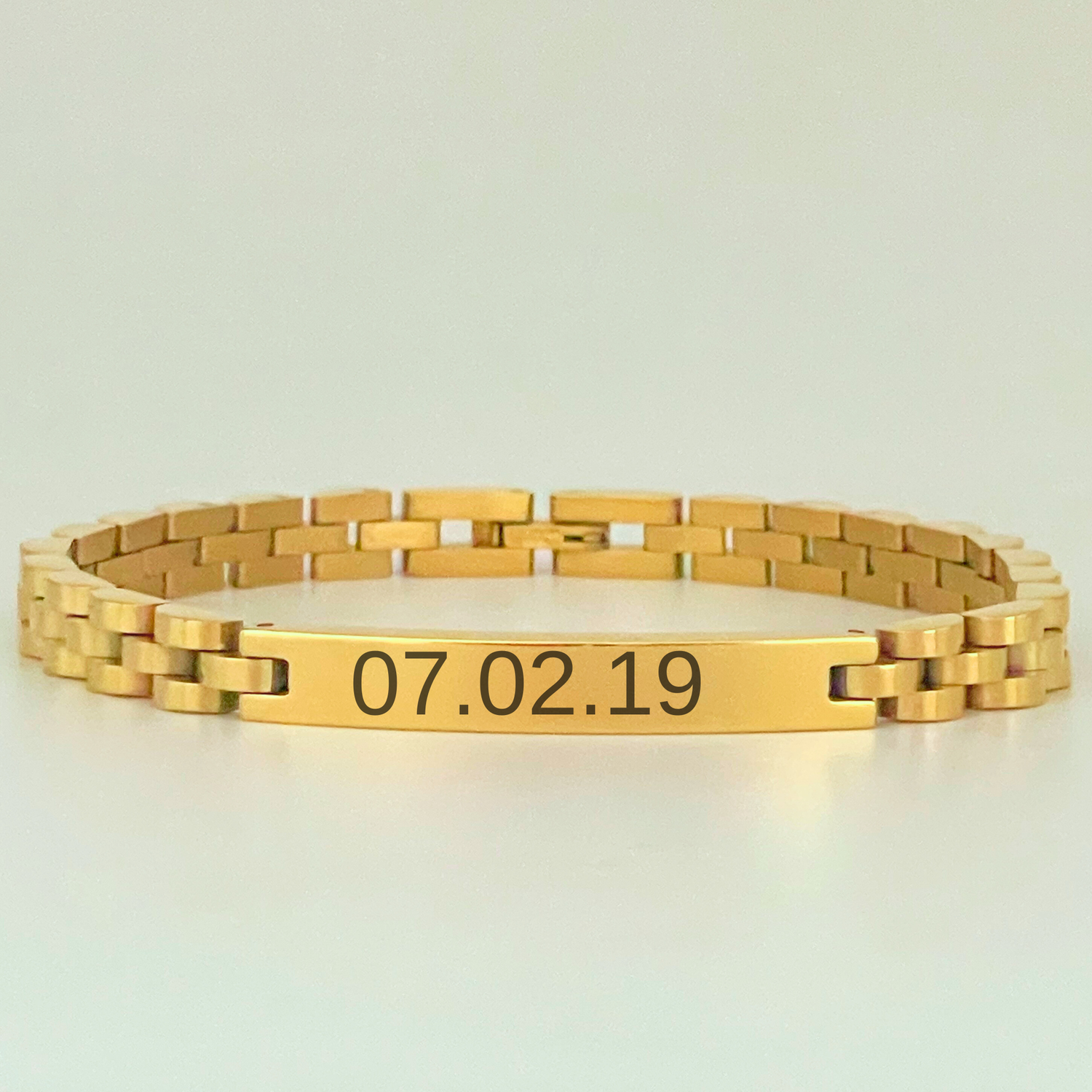 ENGRAVED BRACELET W/ BLOCK CHAIN